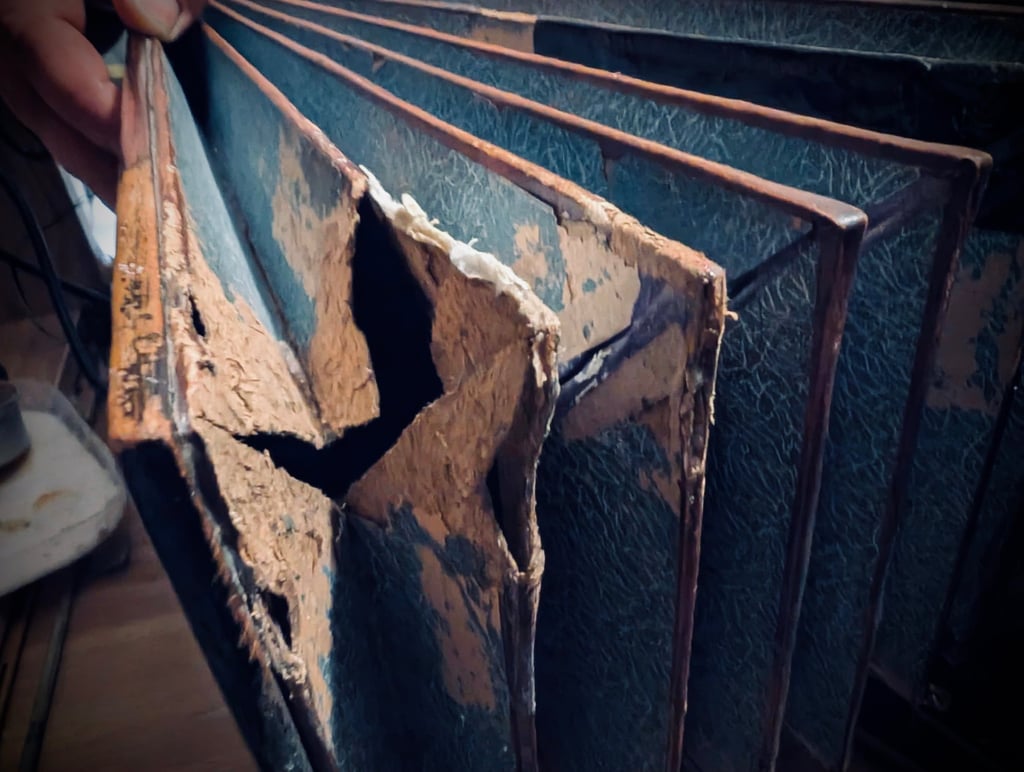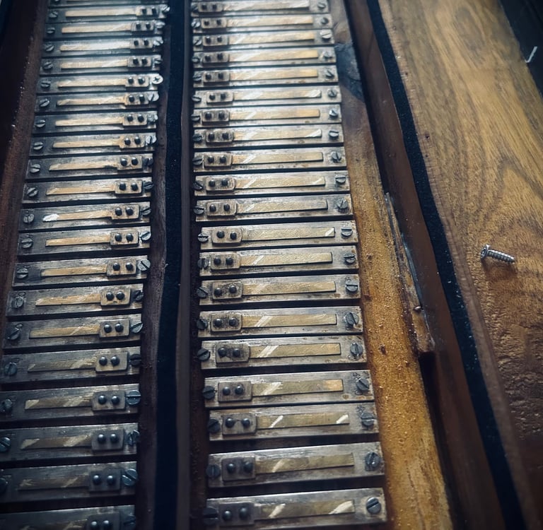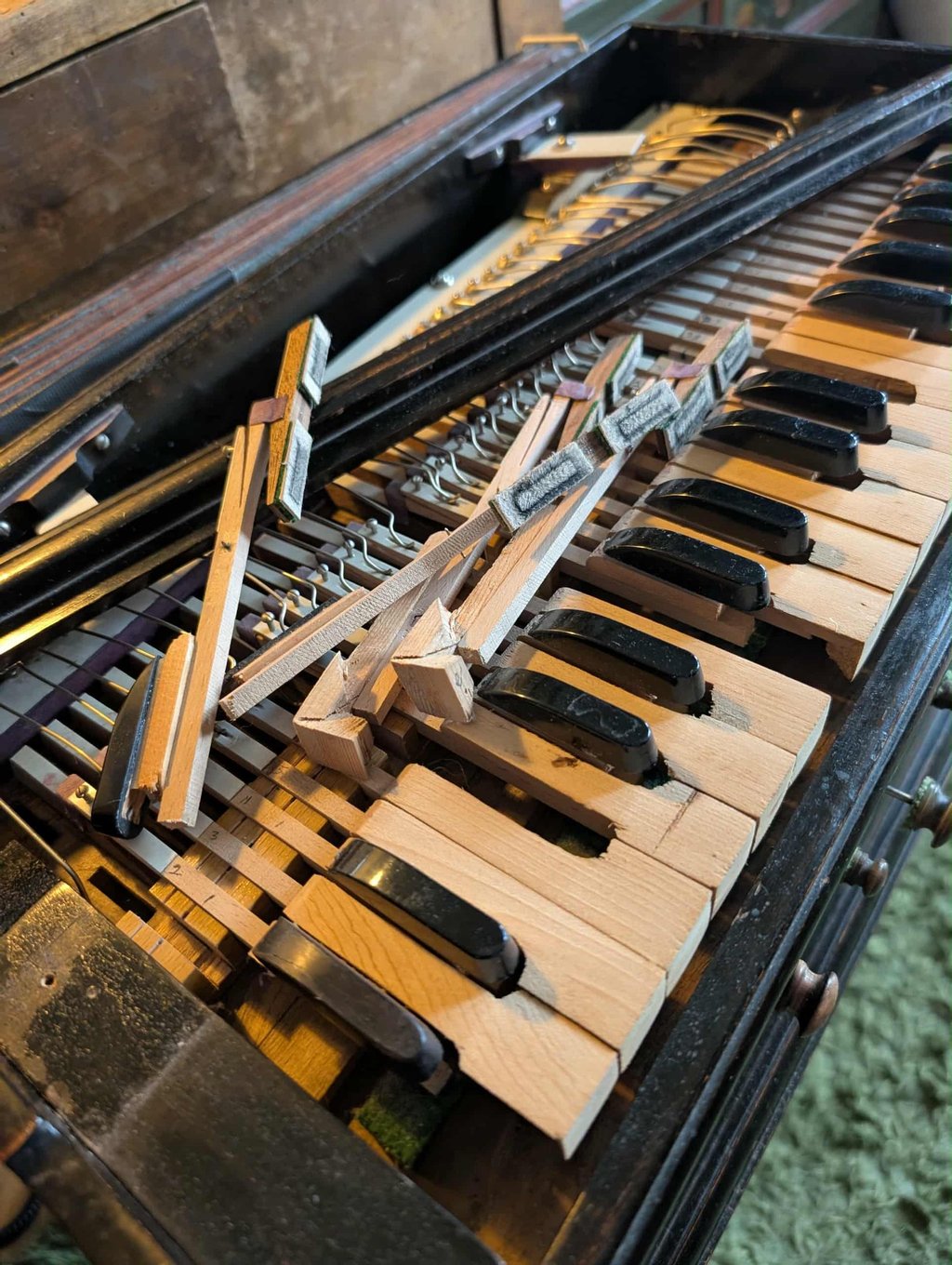 Patrząc na ten instrument to miałam jakieś takie prostackie wyobrażenie, że jak ktoś naprawia akordeony to i harmonium naprawi. Nie okazało się to takie zero-jedynkowe, gdyż nikt z lokalnych nie chciał się podjąć remontu (dziwadło przecież). Nooo... Trochę pojeździłam po okolicy i poznałam kilku Panów, co naprawiają akordeony. Nawet do lutnika z nim trafiłam - on jeden zachwycił się jego formą oraz nieoczywistością, niewidywaną na naszych terenach.